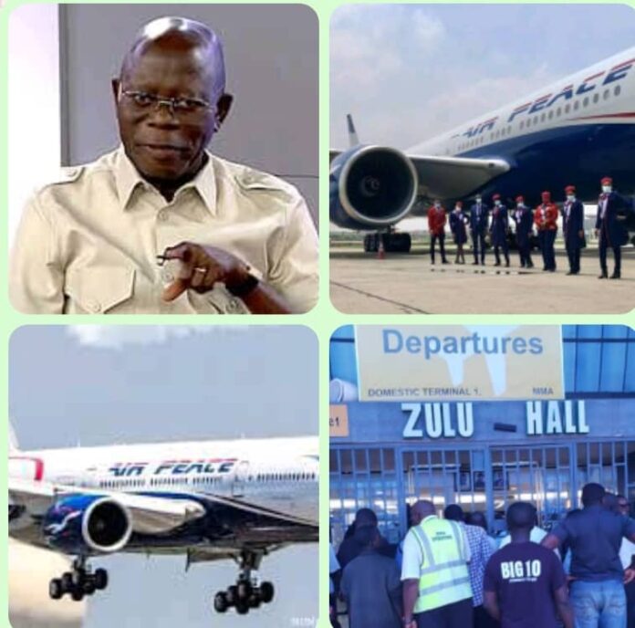Air Peace has issued a statement condemning what it described as the disruptive and aggressive behaviour of Sen. Adams Oshiomhole at Murtala Muhammed Airport Terminal 1 in Lagos on the morning of Wednesday.