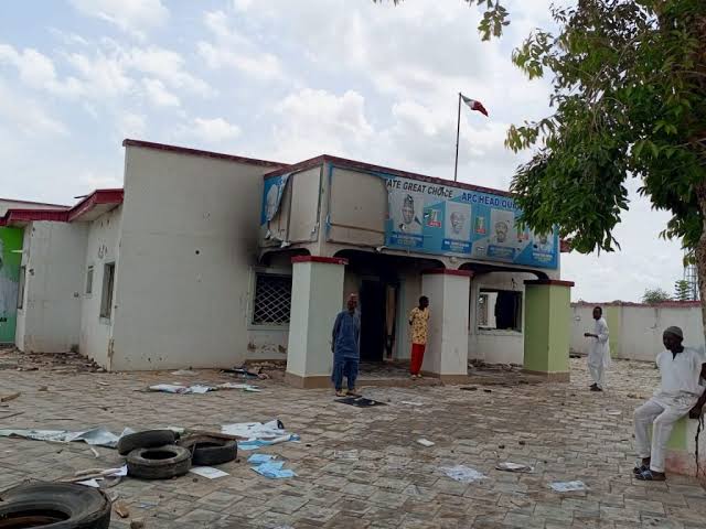 The Secretariat of the All Progressives Congress (APC), Headquarters in Jigawa State has been set ablaze by protesting youths in the State.