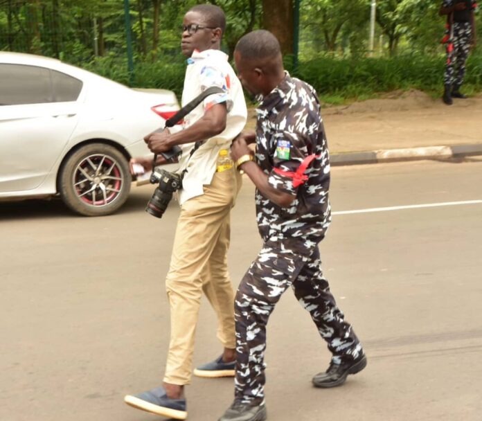“Jonathan Ugbal, the Managing Editor of Cross River Watch Newspaper, was assaulted and arrested at the Mary Slessor Roundabout in Calabar, the capital of Cross River State. He was taken to an undisclosed location and detained for several hours.