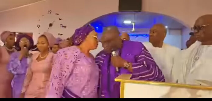 The hotelier, his wife, the elders and the congregation were singing thanksgiving songs when he suddenly said something to his wife who was dancing beside him.