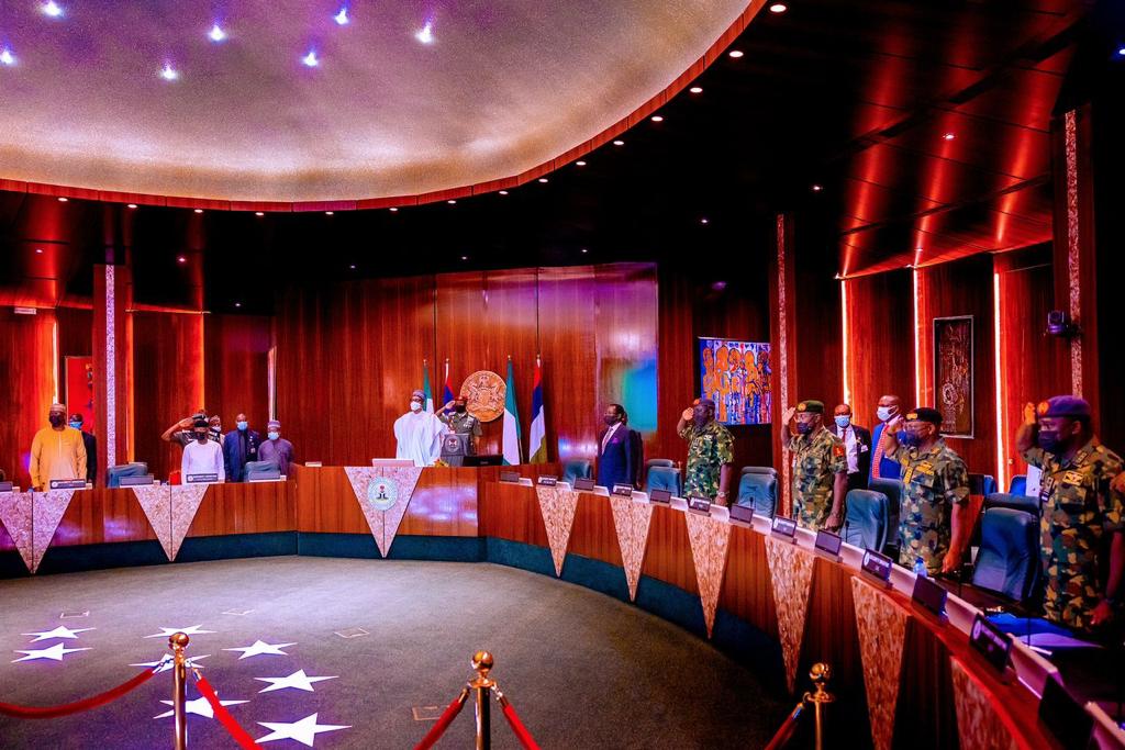 The President is presiding over the National Security Council Meeting at the Council Chambers at the State House, Abuja.