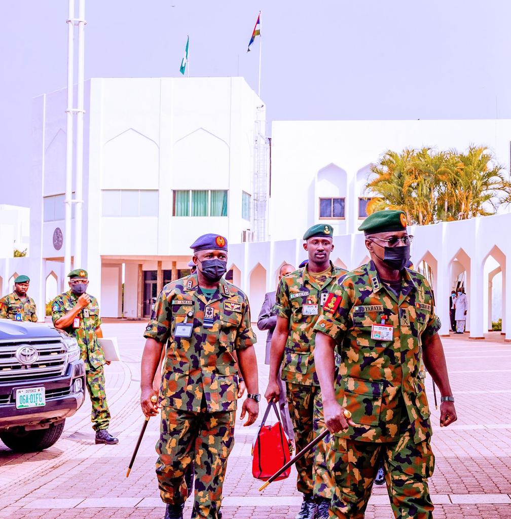 Other security chiefs in attendance include the Inspector-General of Police, Alkali Baba Usman; the Director-General of the Department of State Service (DSS), Yusuf Bichi; and the Director-General of the National Intelligence Agency (NIA), Ahmed Rufai Abubakar, are in attendance.