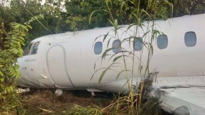 The aircraft overshot the runway and crash-landed at a nearby bush with 10 persons onboard.