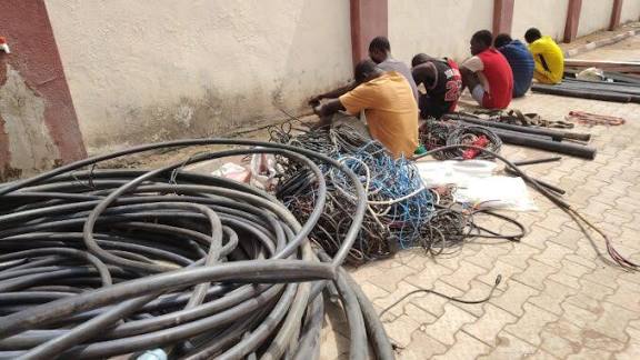 “Umar Rabiu 18 years– was arrested at Berger Junction with large quantities of vandalised armoured cables and other items were also recovered as exhibits from him.